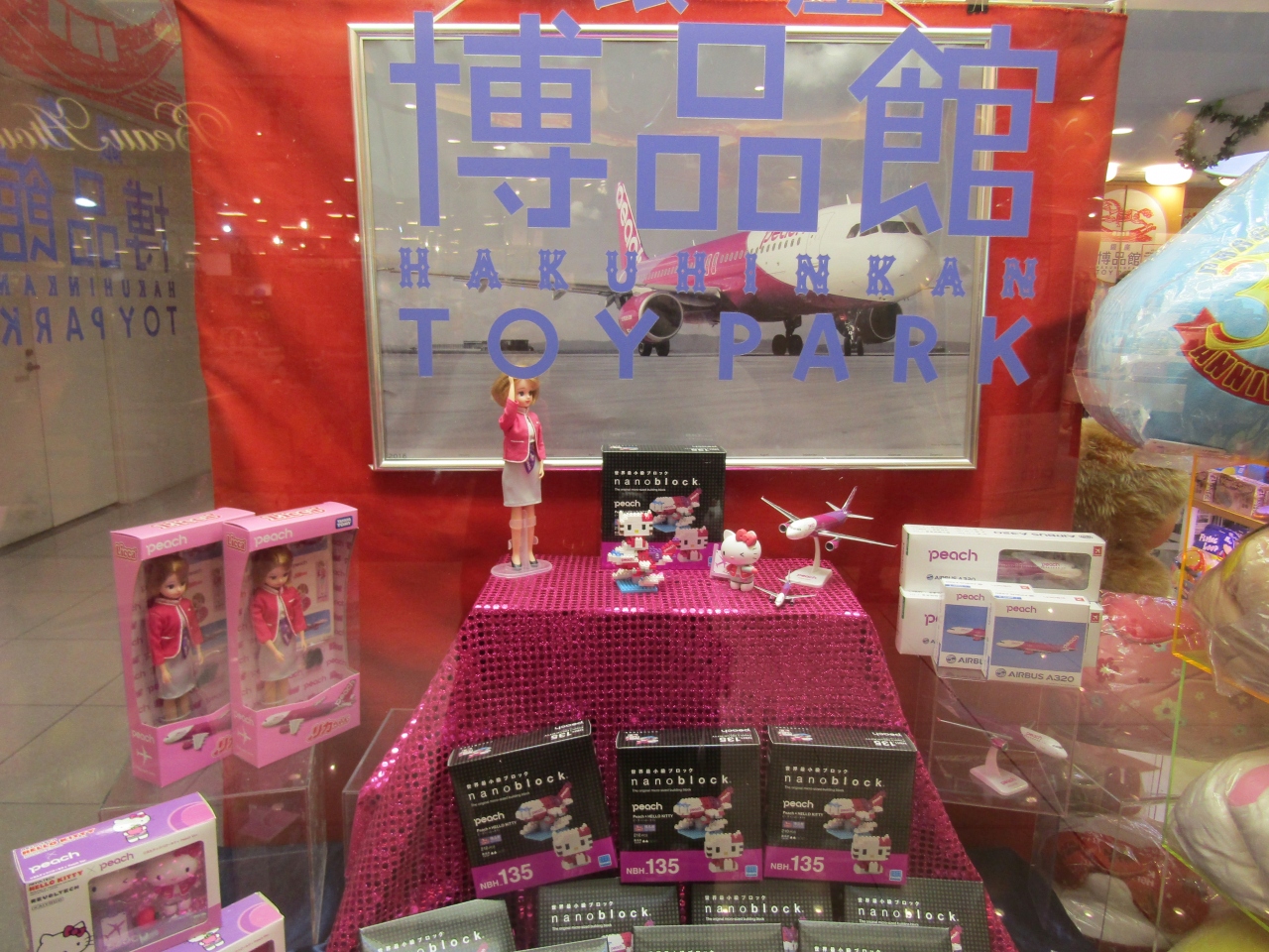 東京の有名なおもちゃやさんが関空にあります。ショーウインドウにピーチエアリカちゃんが飾られていました。かわいかったです。