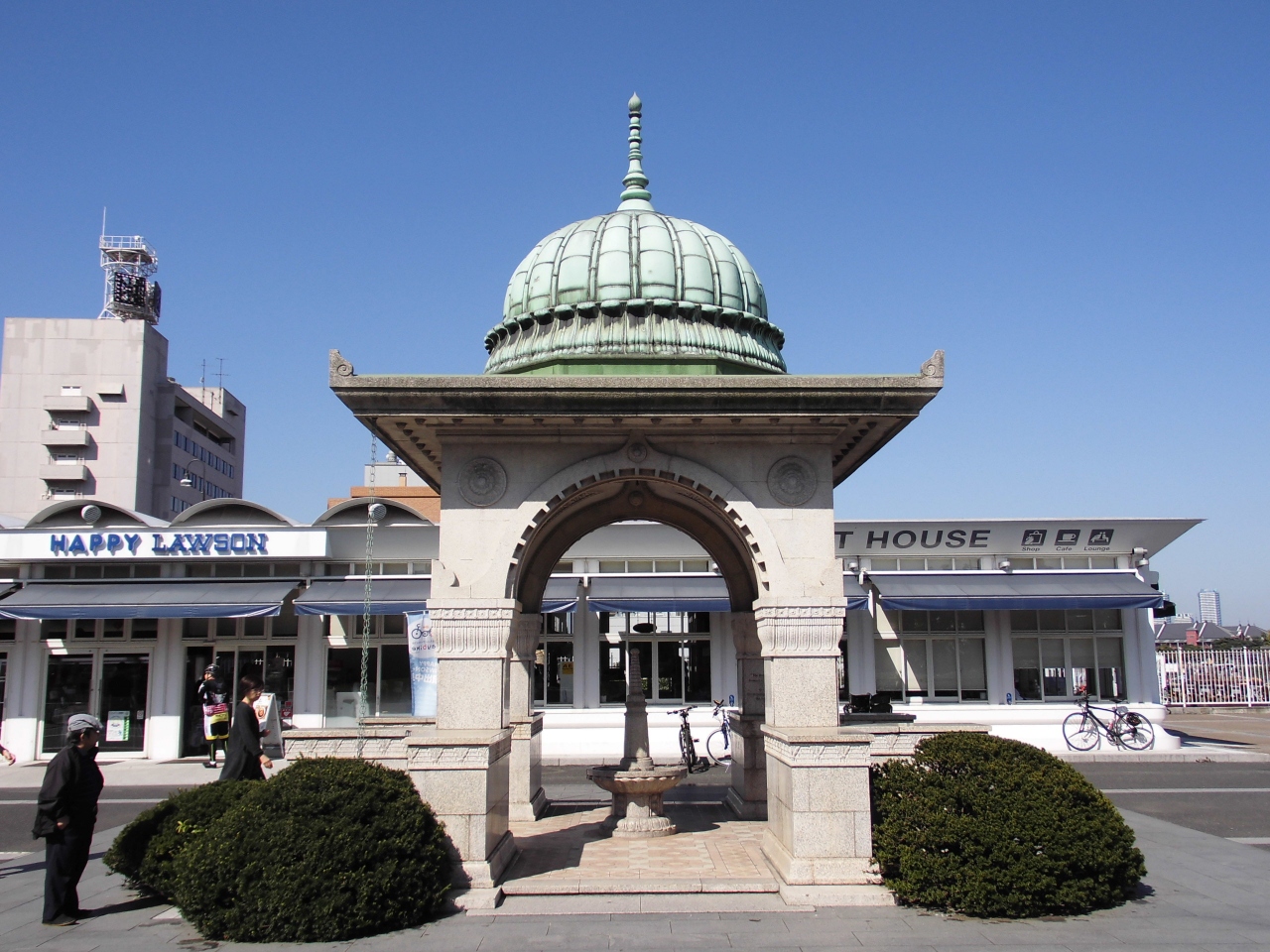 インド水塔は 山下公園の 大桟橋側にあります 隣には コンビニのローソンあります