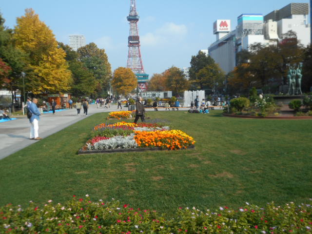 札幌の地下道の上が”大通り公園”で、広く、アクセスも良く、市民も観光客も憩える場所です。春はライラック祭り、、夏はよさこい祭り、秋はオータムフェスティバル、そして、冬は雪まつりと季節ごとにイベントがあり、いつも、人の行き来が絶えない通りでもある公園です。