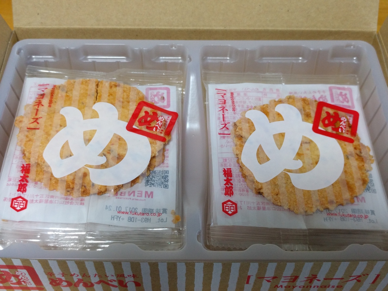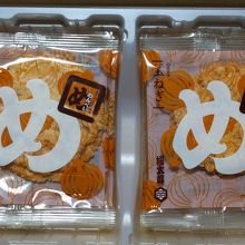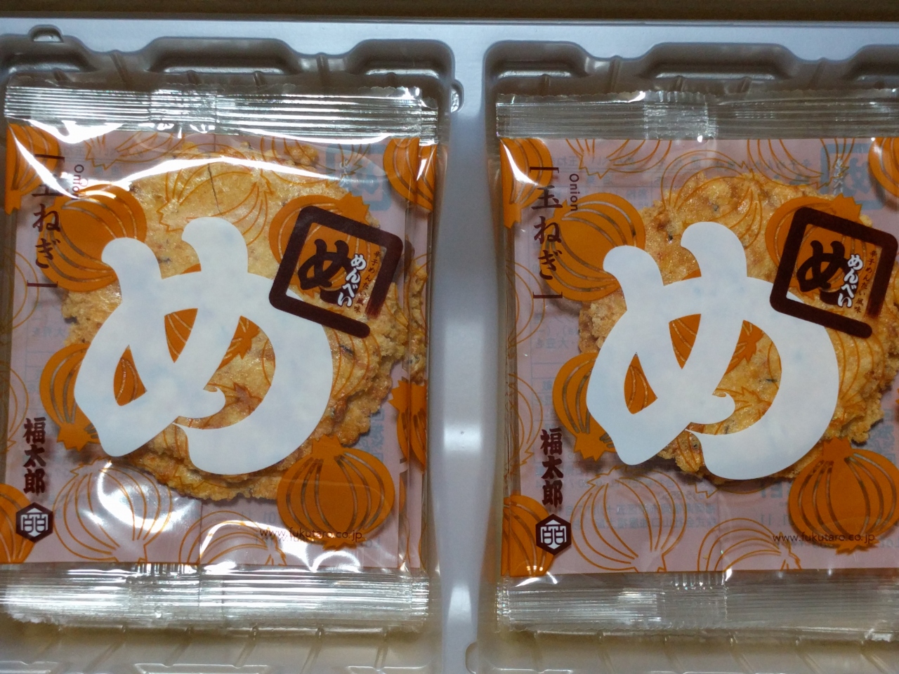 明太子のおせんべい『めんべい』に、じっくり炒めた玉ねぎをプラス。