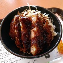 ご飯の上に千切りキャベツと味噌カツがのってます。