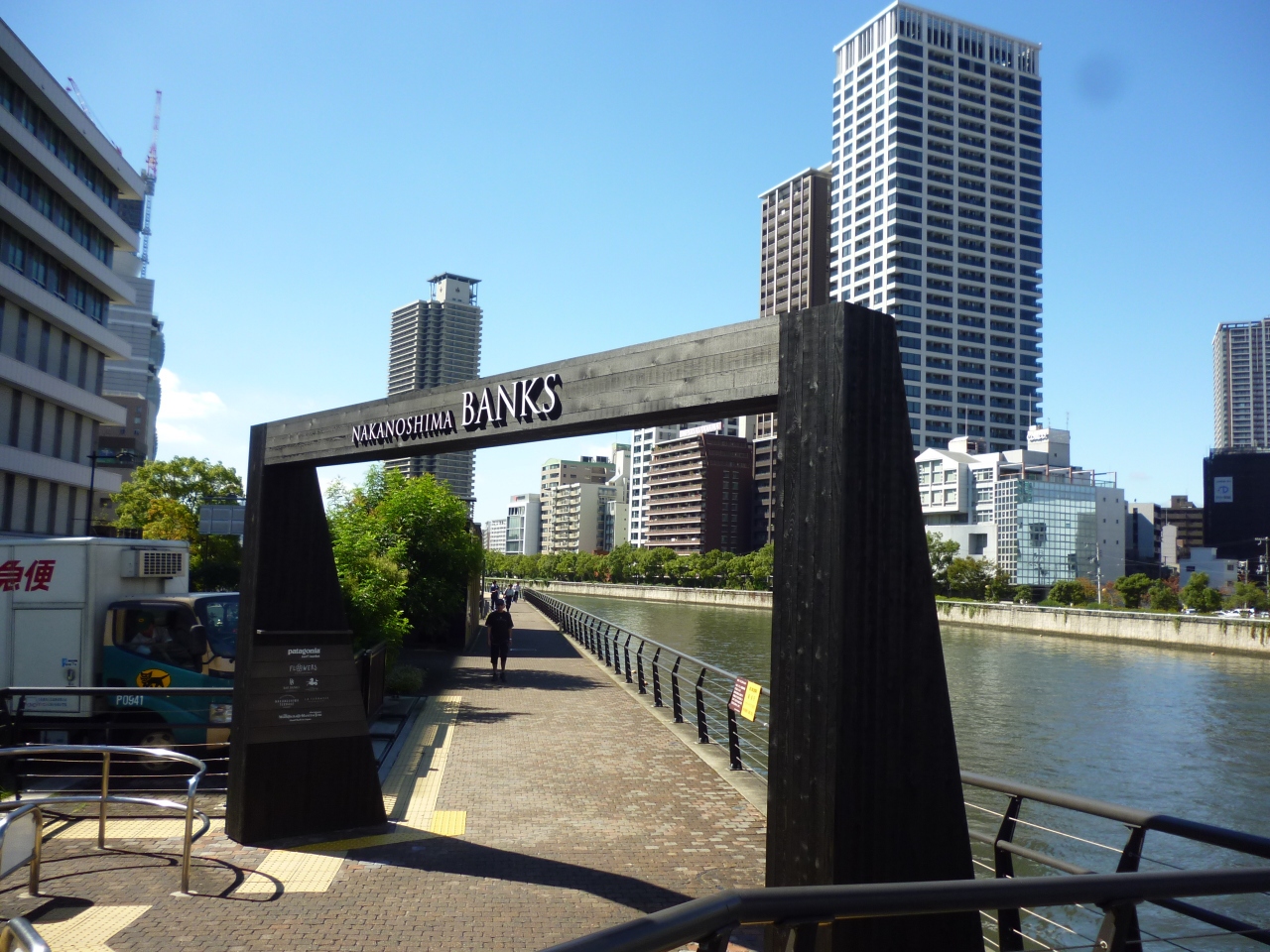 堂島川沿いに遊歩道が整備されています。玉江橋からリーガロイヤルホテル前まで歩いてみました。ウッド調です。入り口もオシャレでした。カフェや、ショップなどもありました。天気が良かったので、ベンチに座って、川を眺めながら休憩しました。