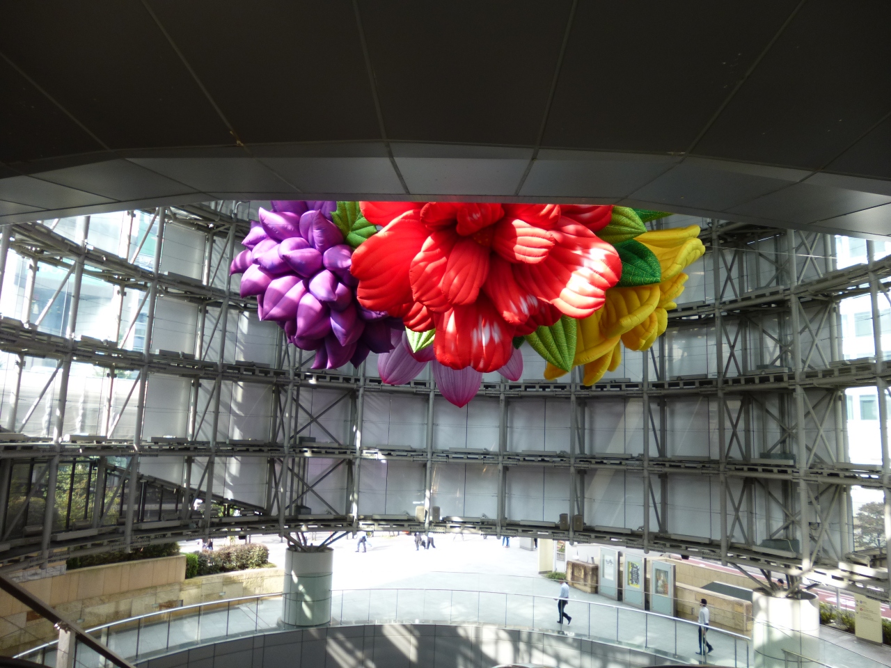 日比谷線六本木駅から森タワーにつながる長いエレベーターの先の吹き抜け空間に、とても大きな花が飾られていました。カラフルな色彩は遠くからもよく目立ちます。六本木ヒルズはクリスマスのイルミネーションが間近に迫っていますが、その前の時期に、とても前衛的で見ごたえのあるオブジェが飾られていると感じました。