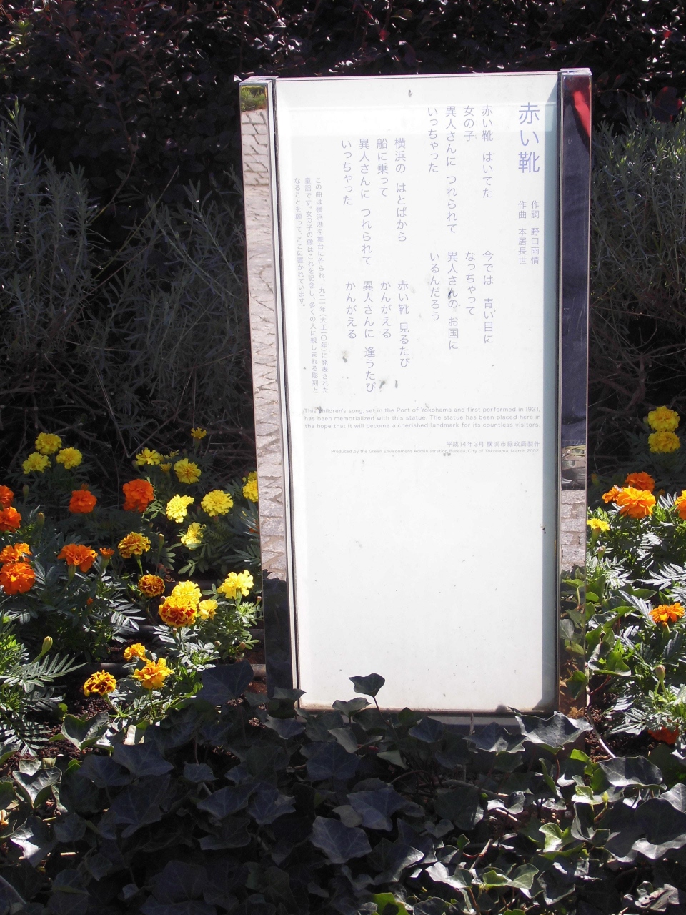 思っていたより かなり小さい銅像でした 隣には 赤い靴の歌詞の石板もあります