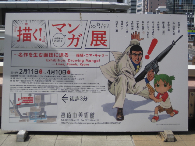 2016年2月から4月にかけては、『描く!』マンガ展というのを開催していていってきましたが、地方の一都市の市営の美術館とは思えない見応えでした。作品の紹介のキャッチコピーも「すべての夢は紙とベンからはじまる」と見せ方も格好いい。高崎駅から歩いて3分位。2016年9月から11月は「愛のなかの女性たち」