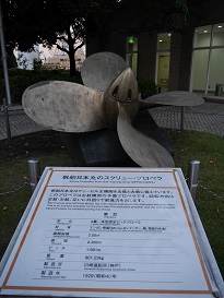 桜木町駅から歩いて7分程度の所に有る日本丸メモリアルパークには日本丸の使用していたスクリュープロペラが展示して有ります。帆船なのにスクリューって変だなと思いきや無風状態や港内など帆走が出来ない時の為に使用する事を初めて知りました。
