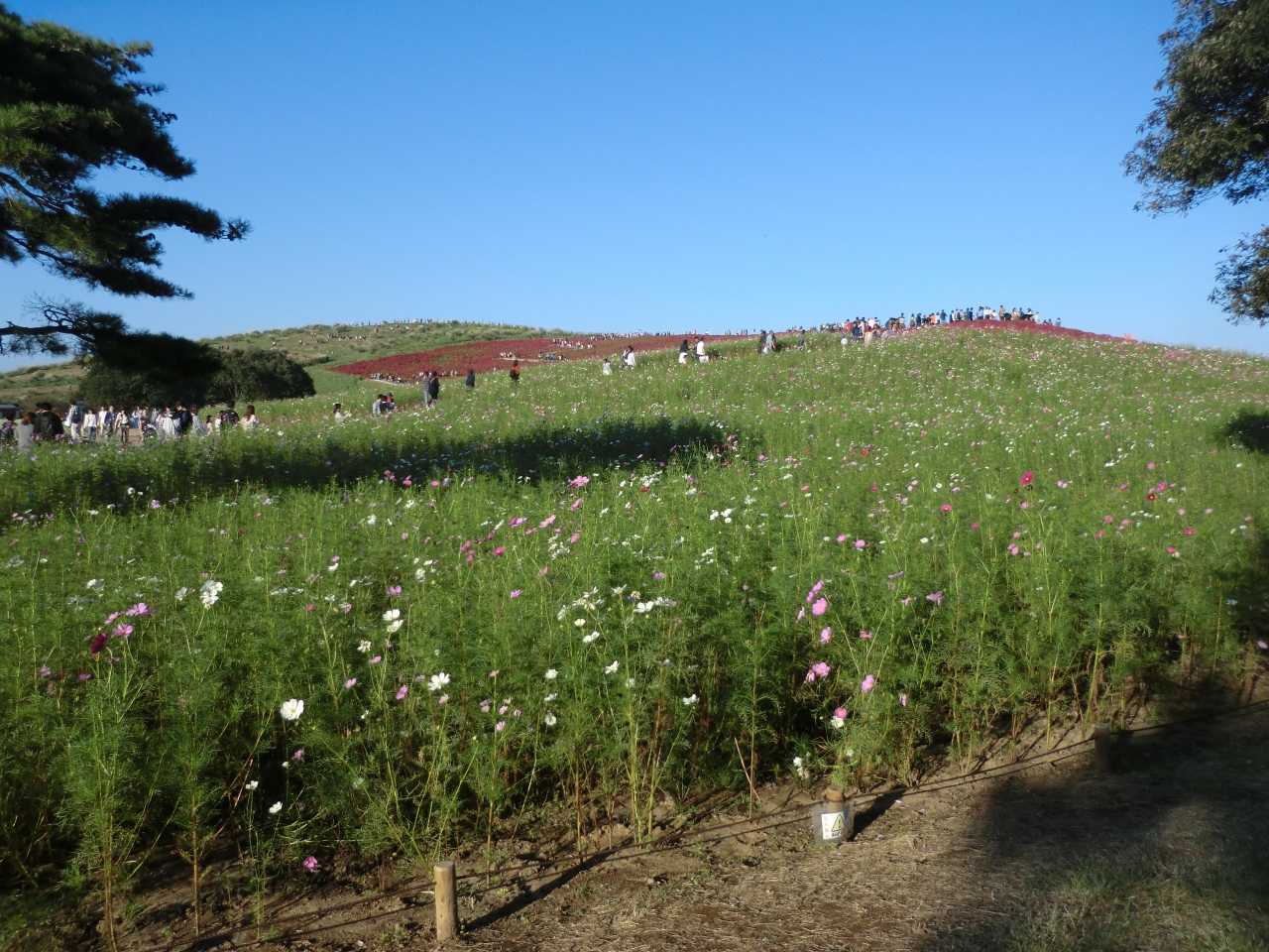 勝田駅から、東へまっすぐな通りを行くだけです。突き当りがひたち海浜公園です。入場料金410円を支払って入場です。コキアが見える丘まではしばらく歩きます。レンタサイクルも3時間400円であります。コキアですが、紅葉でピンクと赤の中間のような色です。丘全体が赤く染まるので、幻想的です。海外のお客さんもたくさんいました。売店も充実しており、ソフトクリーム、ラーメン、とうもろこし、そばなど、困ることはありません。食べ物の持ち込みも可能で、お弁当を広げている方も大勢いました。一度は、訪れてください。