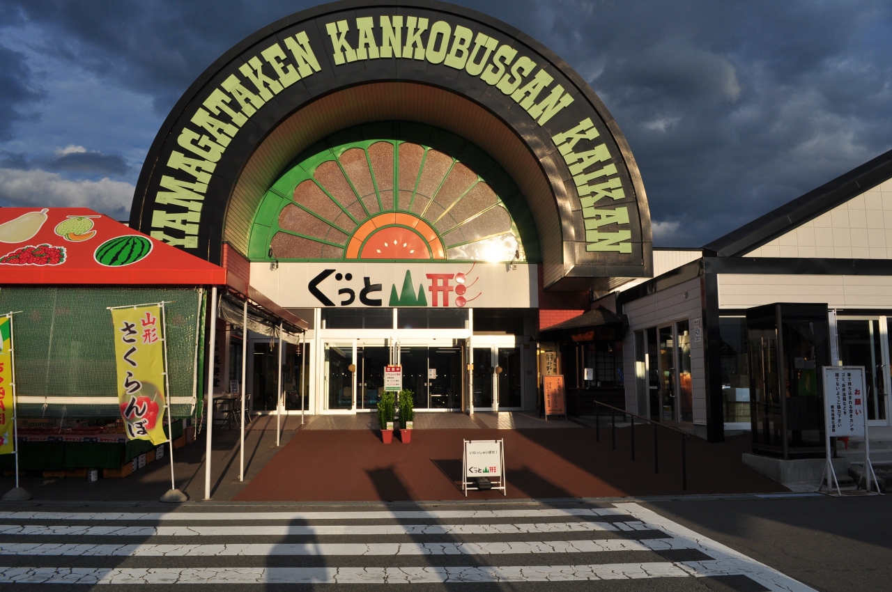 山形上山インターのすぐそばにありました。山形県の観光物産館という事で、店内には山形県のお土産がたくさんありました。また、山形だけではなく、東北各県のお土産も用意されており、とても便利な施設でした。6月の訪問だったので、建物の前ではさくらんぼの販売が行われていました。駐車場の数も多くて便利です。