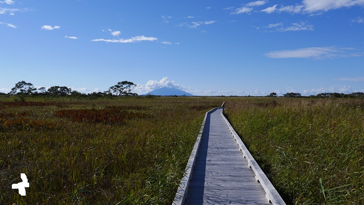 幌延ビジターセンターから始まるサロベツ原野を歩く木道。途中長沼などの見所を経て、約3キロ離れたパンケ沼まで続いている。訪問時はクマ出没のため長沼の途中で通行止めだったが、この区間まででも広大な風景を満喫できた。原野の遠くに見える利尻山も見ごたえあり。花の時期はさらなる感動があると思う。