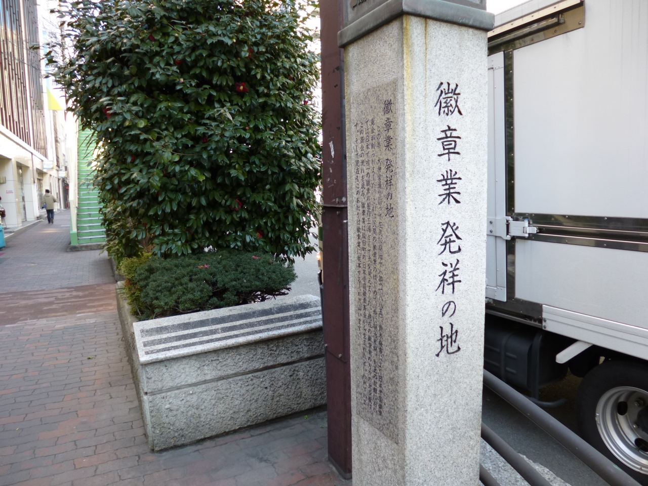 九段下から飯田橋までの間、目白通り沿いには数々の石碑があります。「徽章業発祥の地」もそんな石碑の一つです。これらの石碑に書かれている文字を読んでみると、このあたりは様々な歴史を有する街であったことがわかります。今は、特に変哲もない都内の通りに過ぎず、往時の面影が残っていないのが残念です。