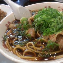 「中華そば」の真っ黒なスープは、見た目通りの濃い味で、口直しにセットの「ヤキメシ」を食べても、これもまた味が濃い(笑)