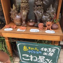 種類がいくつかあり、置き型シーサーが大小2種類、壁掛け型のシーサー、向かい合ったタイプのペアシーサーなどがありました。