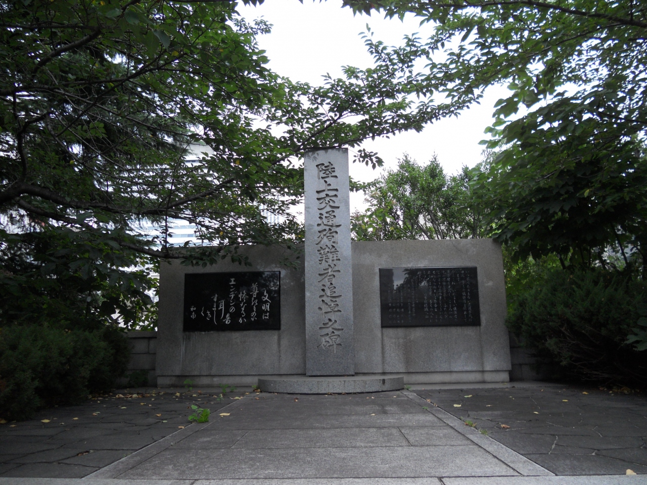 境内にはいくつか碑がありますが、その中でも大きく、存在感があったのがこちらの「陸上交通殉職者追悼之碑」です。