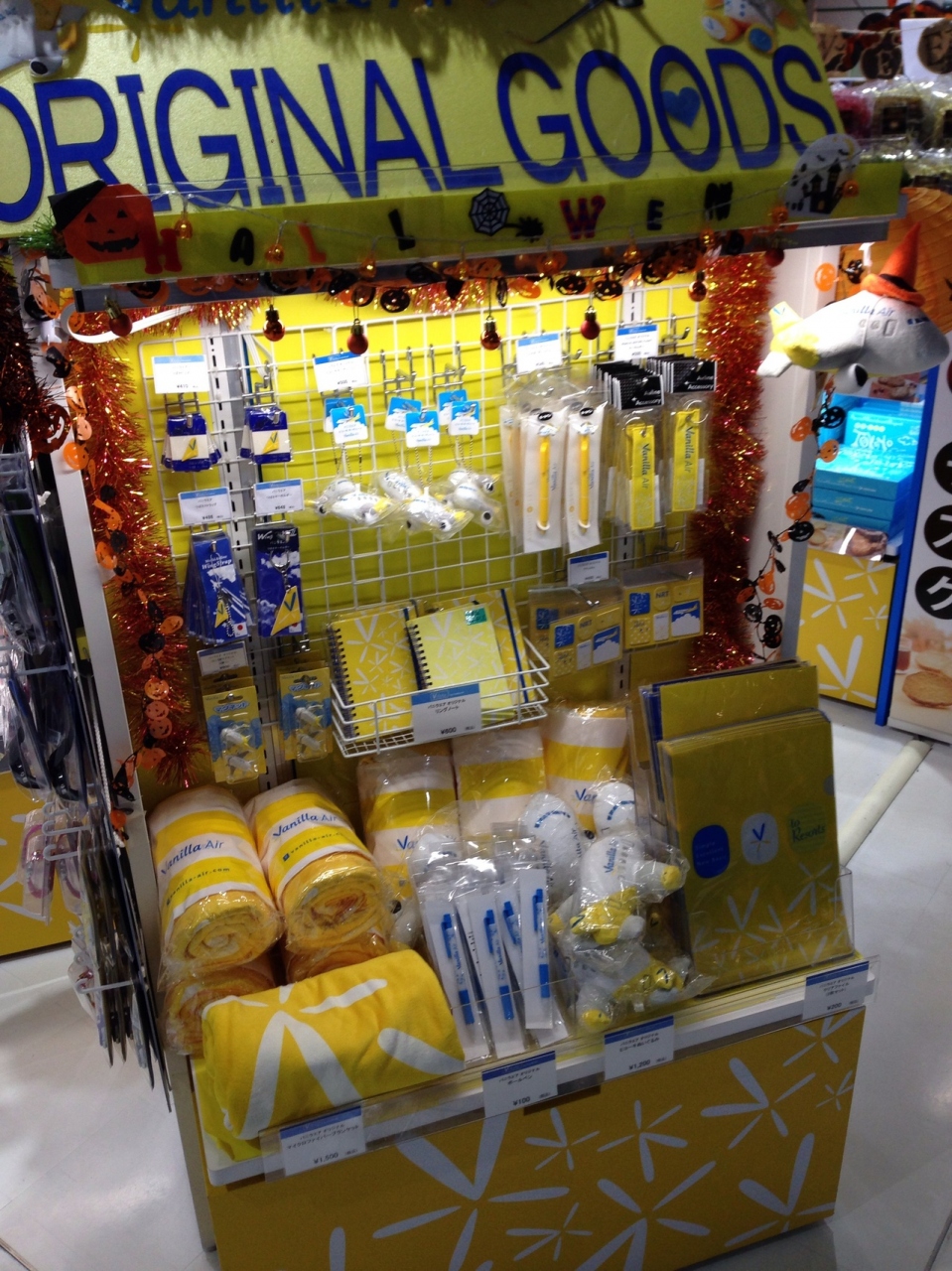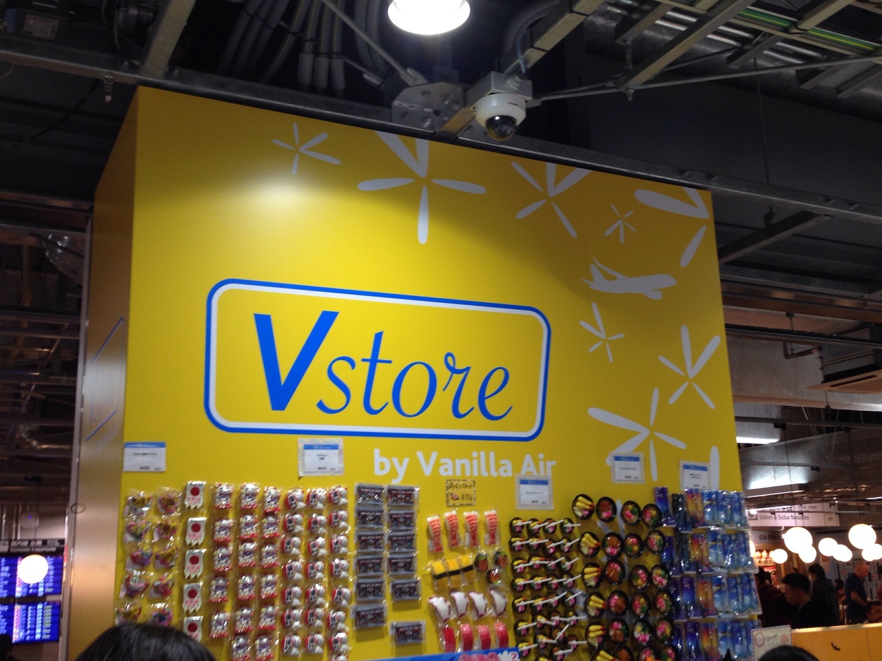 そのバニラエアの売店がここで、黄色ベースにブルーのVは明らかにそうです。オリジナル商品も案外多く、若い会社なのにがんばってるなぁといっま印象。