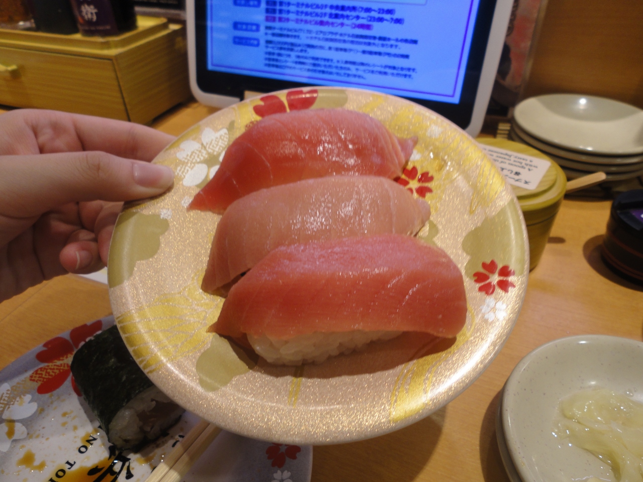 ピーチで香港から関空に到着して、ピーチは機内食がない(有料)のと、日本食が恋しいのとでお寿司を食べました。入店したのが、21時を過ぎてました。「もうすぐ閉店ですがいいですか」と言われましたが、閉店は22時とのことで、まだ時間があるから大丈夫と思って食べ始めました。パネルで注文したお寿司は新幹線みたいなのに乗って結構なスピードでやってきます。おいしかった。ただ、結構早くから片付け始めて、落ち着いて食べれなかったのが残念です。