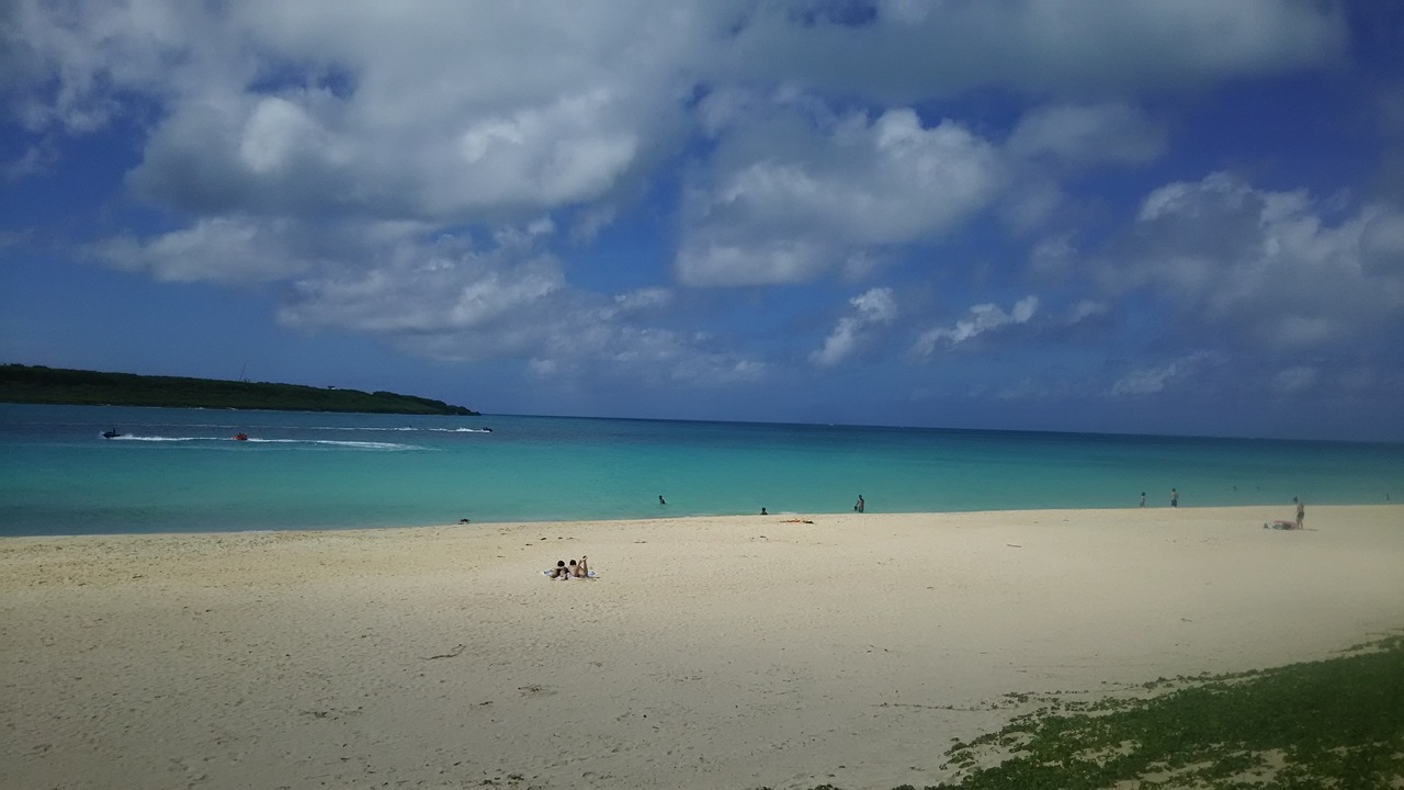 噂に違わぬブルーとグリーンの海は本当に綺麗でした。砂がきめ細かく、波打ち際でも水が透明なのには驚きです。