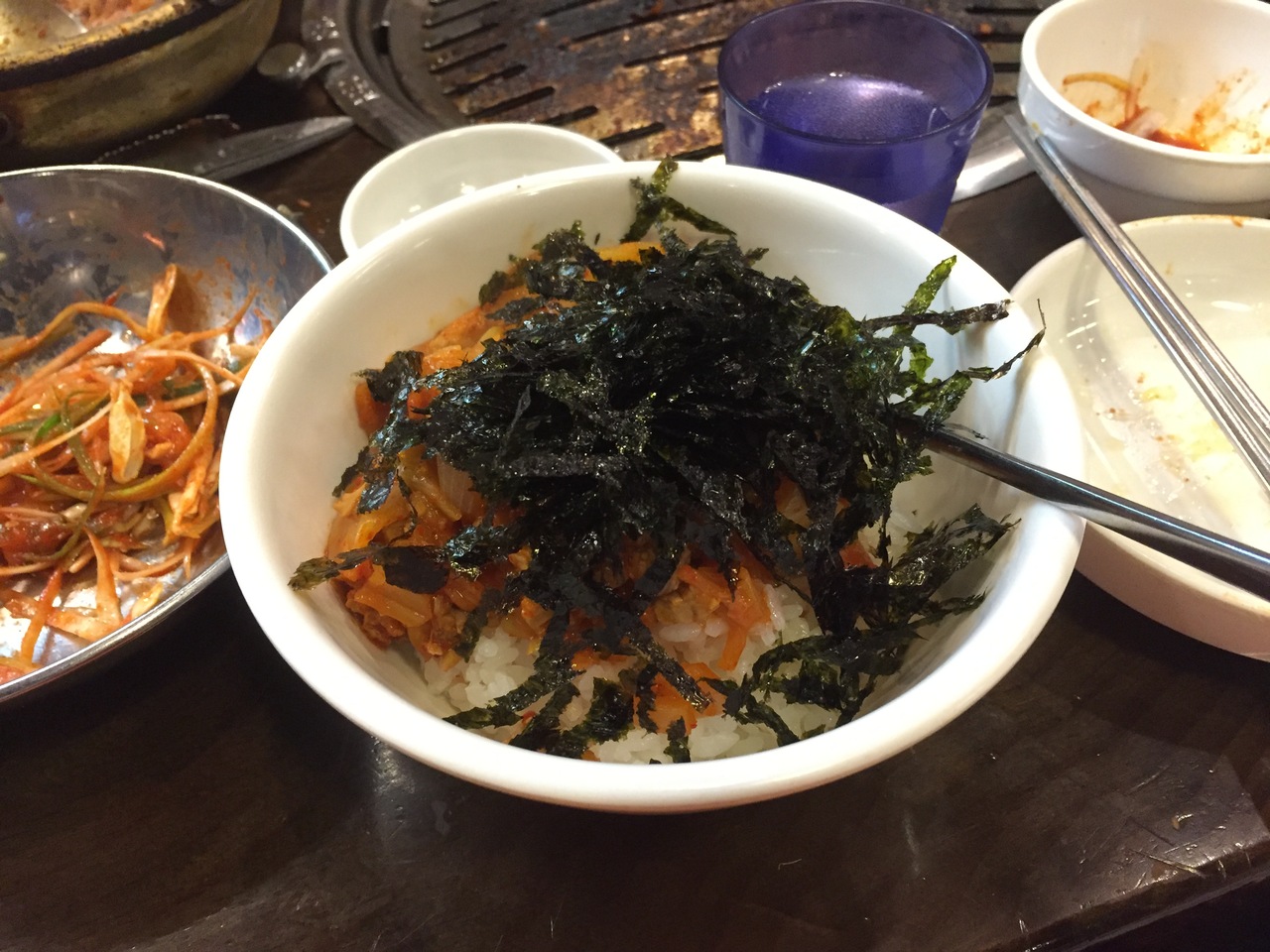 キムチチゲ韓国のりをこれでもかって程乗せて食べると美味しい~