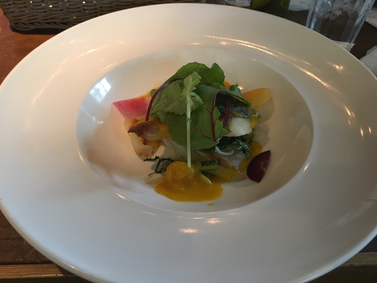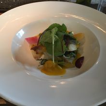 雰囲気がよさそうなので、パークスの8階にあるこちらのお店を訪問。席はなんばパークスなのでそれなりに混んでいたが、今回はプリフックスランチを注文。スターター、メイン、パンと言うラインナップで1500を超えるのでやや
