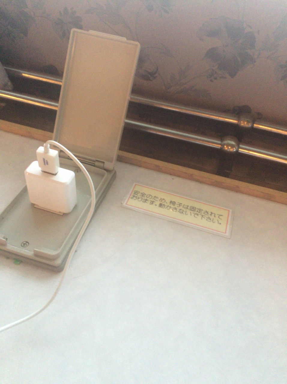 二階正面は目立たないけど進行方向がバッチリ見られるラウンジあり、さらにAC電源付と至れり尽くせり、ここはオススメ