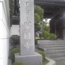 住宅街の狭い路地の奥にたたずむ日蓮宗の寺院。