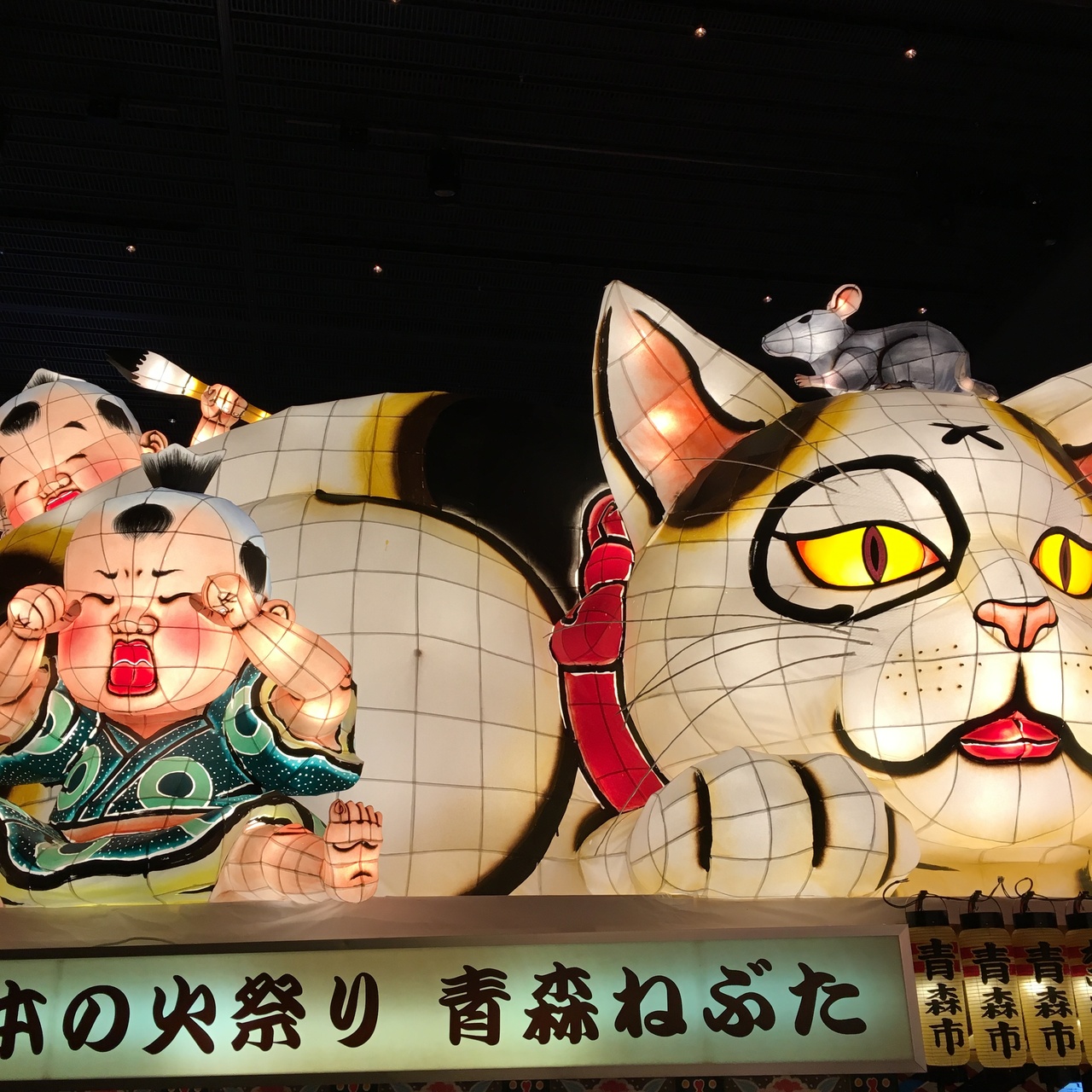 ひろーいスペースに何個もねぶたが置いてあって、大迫力でした。