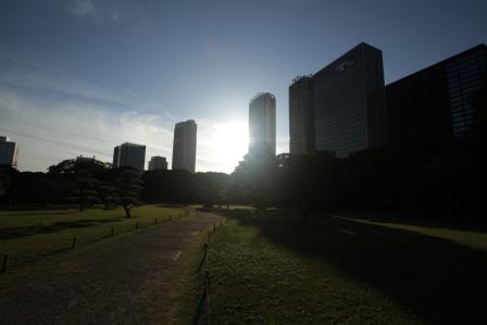 紅葉を見物しようと11月中旬訪問。ところがまだ早く、見ごろまではあと10日程度かかるとのことでした。浜離宮は初めてだったのですが、こんな広い庭園がぐるりとビルに取り囲まれているのに驚きました。さすがは東京です。ただ、実は何が見どころなのか、どこがすごいのかよくわかりませんでした。そんなわけで、紅葉がない以上、それでも入園料分モトを取ろうとするとただのんびりするしかなく、池の鴨と、すれ違う着物姿の女性を眺めて小一時間ぼんやり過ごしたのでした。