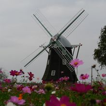 オランダ風の風車に四季折々の花が楽しめる公園