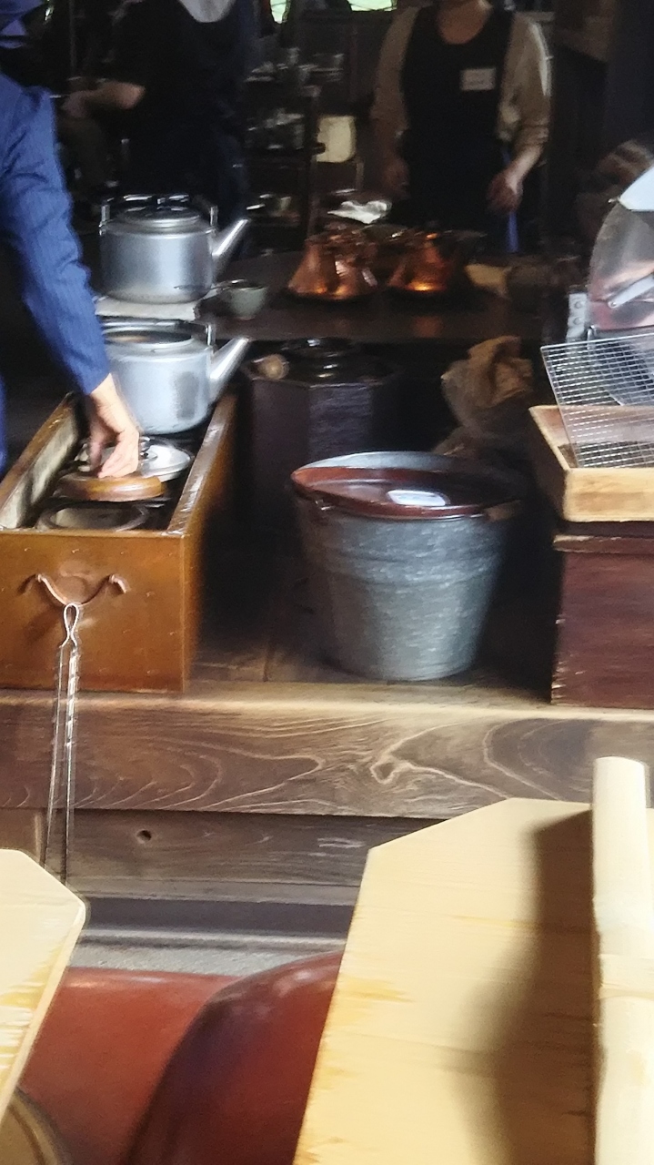 大きな釜があり、吹き抜きの店内が温かく感じました。