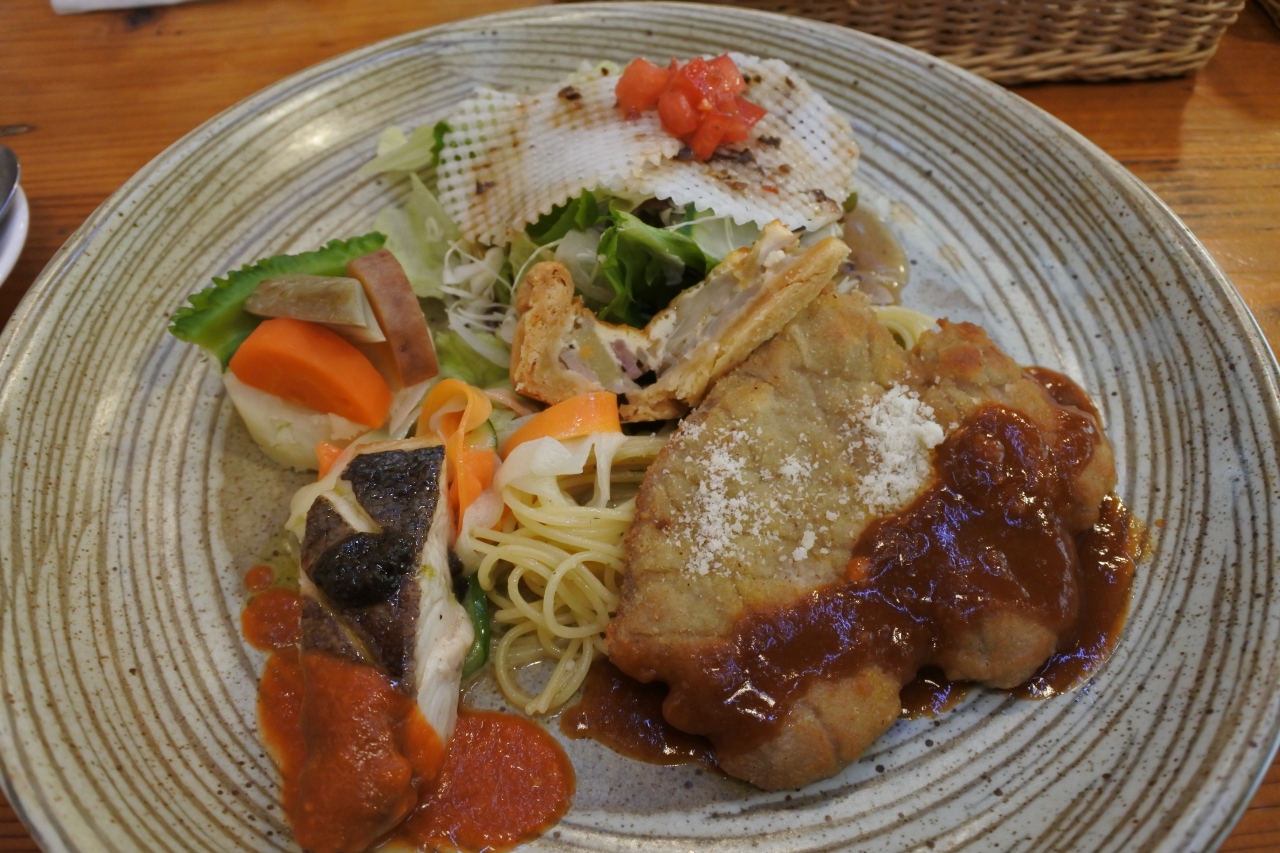 そしてセット。カツレツに魚にキッシュにパスタに。大人のお子様ランチ。どれもレベルが高い。