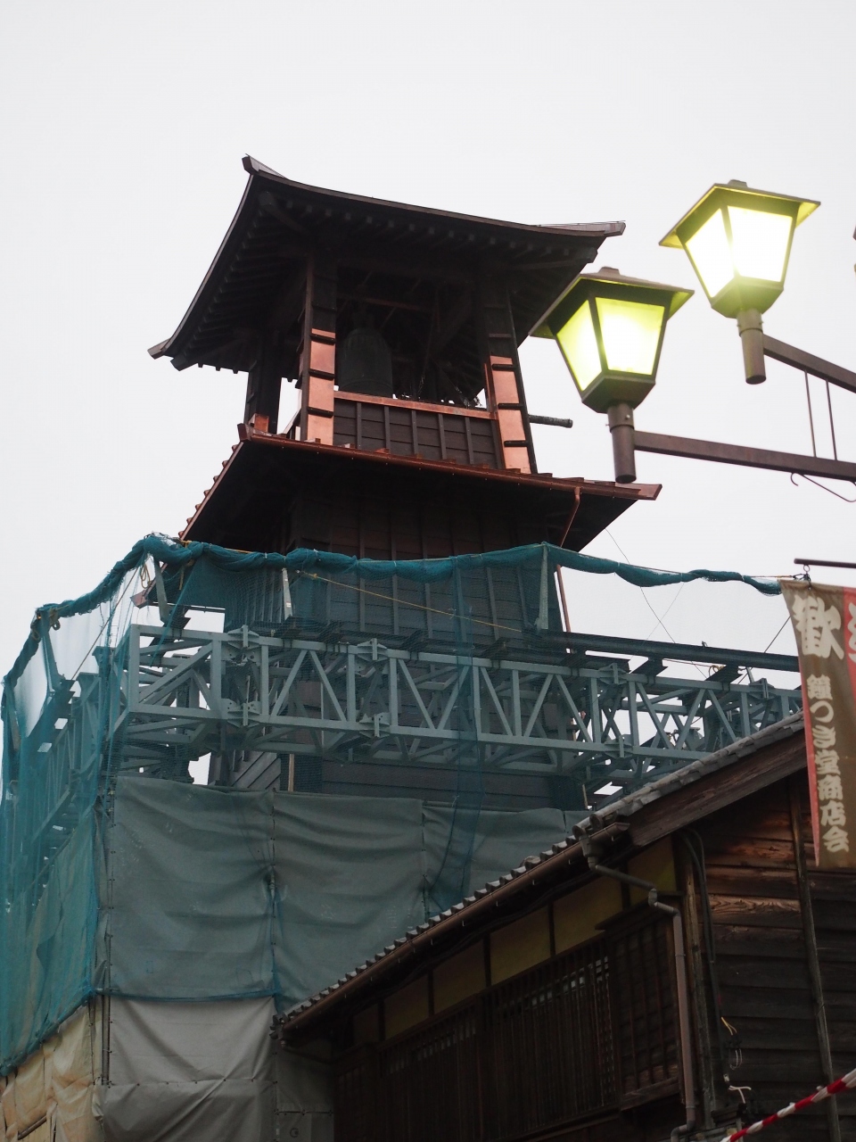 現在、耐震工事中ということで、下層階の部分は工事の壁がめぐらされてしまっていましたが、それでもやっぱり川越のシンボルだな~と思いました。