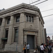 大正浪漫通りのはじまるところの角に建っている、石造りの重厚な雰囲気の建物です。