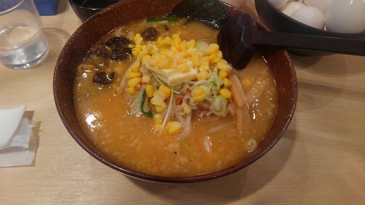 京都駅ビル10Fにあるラーメン店がいっぱい集まった小路です。いろんな地方のラーメンを頂くことできて人気ありますね。外国人の方も沢山おりました。今回は札幌味噌ラーメンをチョイス。味噌味のコーンバターは合いますよね。