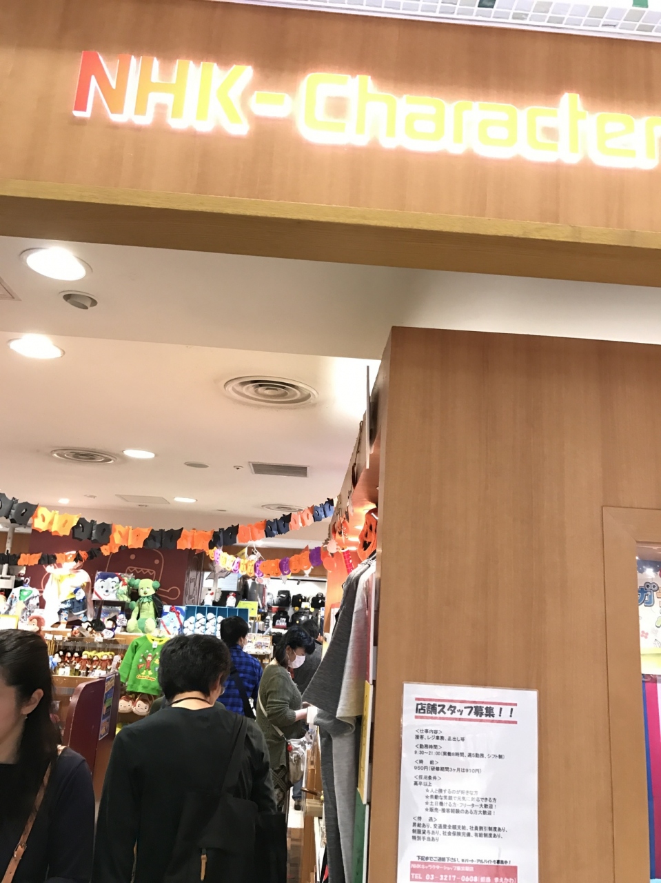 八重洲の地下街にあるキャラクターストリート。各テレビ局のショップがありますが、NHKも例外ではなく、キャラクターストリートにお店があります。NHKのキャラクターのグッズなどもたくさん販売しておりますよ。