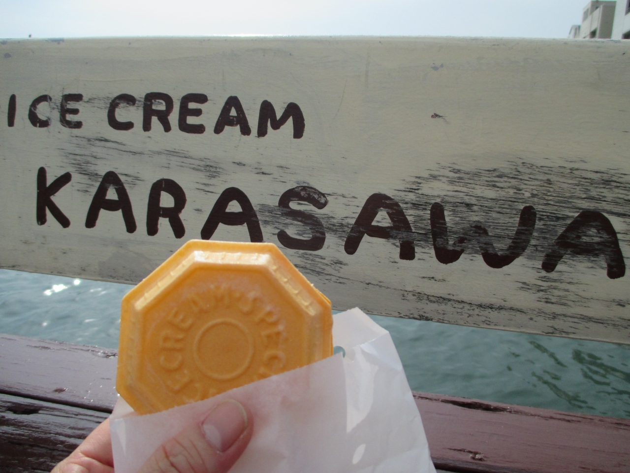 店内でもいただけますが、モナカは絶対海を見ながら食べ歩いて欲しい。
