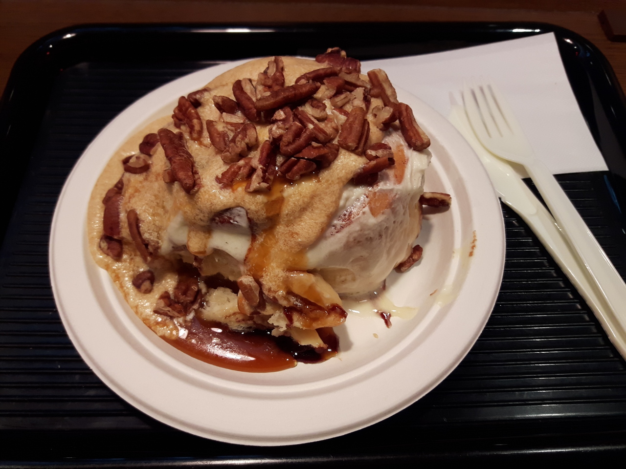 シナボンはくどいくらい甘いフロスティングが売り。特にキャラメル味とピーカンナッツが香ばしいピーカンボンがおすすめです。ミニかレギュラーか迷いますが、お得なのはレギュラー。460円で十分アメリカンスイーツが満喫できます。