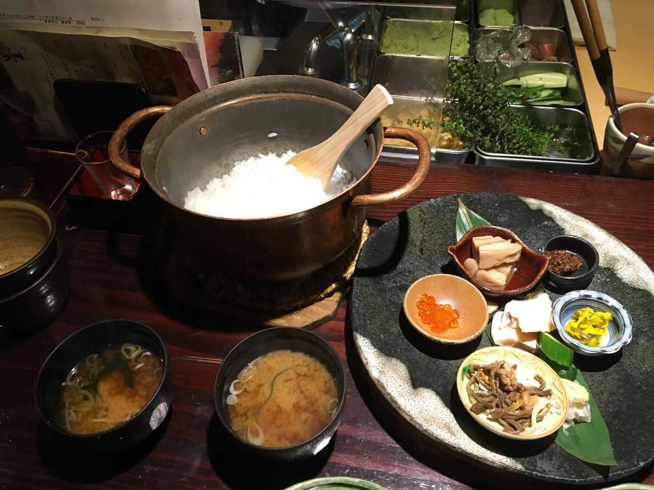 ホットペッパー特典の日本酒もいろんな種類からえらべ、おちょこ一杯くらいだろなと思って期待してなかったんですが、マスに入ったおちょこから溢れて、たぶん三杯分くらいありました!銅釜のコシヒカリまで食べてのんで、2人で八千円。フロアの若いスタッフさんも、カウンター内の板前さん?もみな感じよくて、お酒のアドバイスとかくれました。