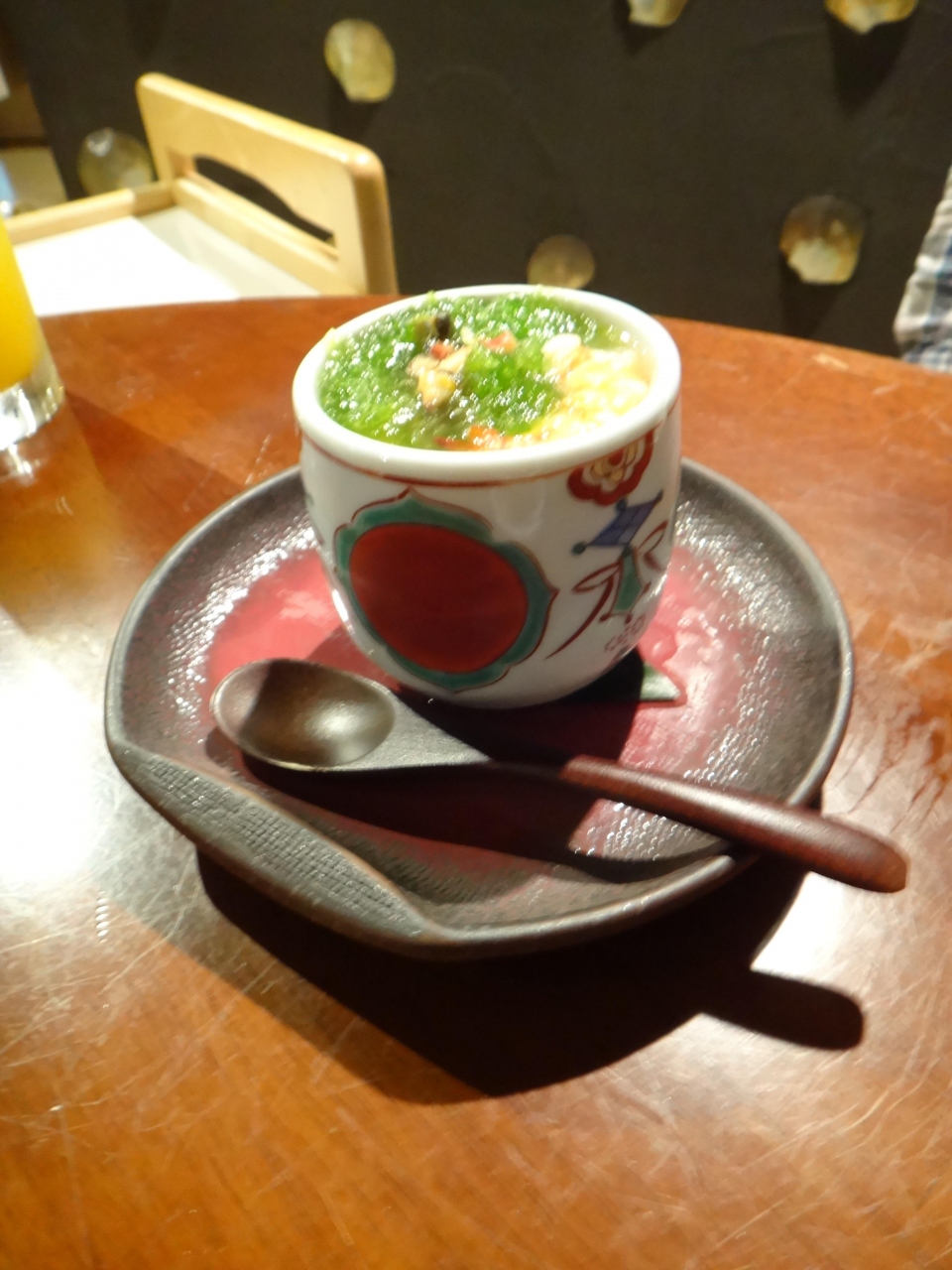 注文は「青さの海鮮かき揚げ」「にがうりの味噌炒め」「海鮮茶碗蒸し」「トビンニャ」「油そーめん」などを頼みました。