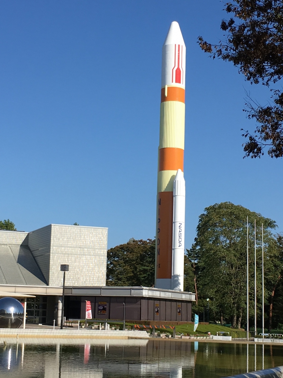 ロケットのモニュメントが遠くからでも目に入り科学の街らしいと思います。