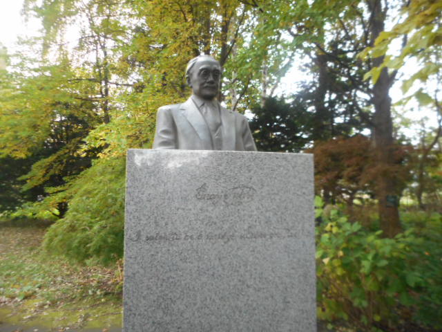 北海道大学のポプラ並木の脇の敷地に胸像があります。初めて見た時は、どうしてここにあるのかと思いましたが、表示板を読むとなるほど、卒業生でした。北海道大学の構内には、様々な歴史上の人物の胸像や建築物があります。