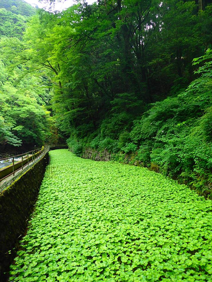 日本の滝100選のひとつで、滝つぼの下流にはマス釣り場もあります。渓流沿いにはわさび田が続いていて緑がきれいです。