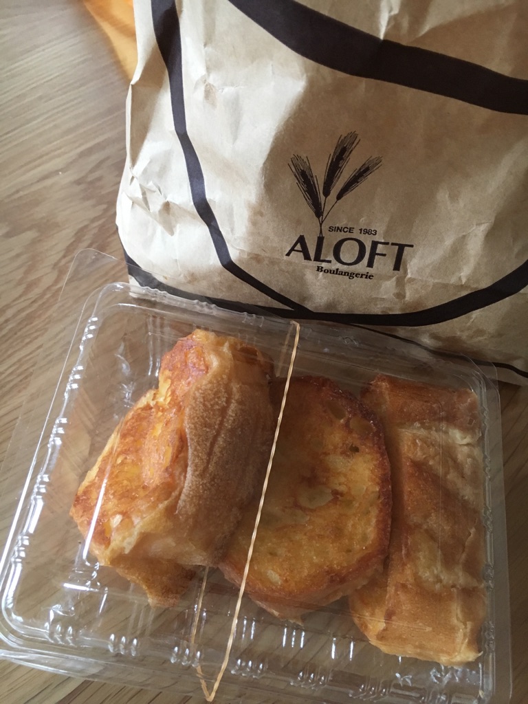 パン屋さんですが、フレンチトーストが何気においしくて人気商品なんです。わたしたちが行ったときは品切れで30分待ってやってきました。バゲットを使っていますが、卵がちゃんと染み込んでふわふわでした。出来立てはとてもおいしかったです。