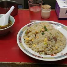 築地市場内にある中華屋さんです。何軒か軒を連ねる中の一つ。この季節の人気は、牡蠣が入った牡蠣ラーメンのようですが、う~ん、ランチのラーメンに1200円は少しキツイかな?ということで行列で並ぶこと10分、同僚のススメでチャーハン&大盛を注文。こちらもパラパラで美味しい、大盛で正解。670円が大盛で770円也。オススメです。