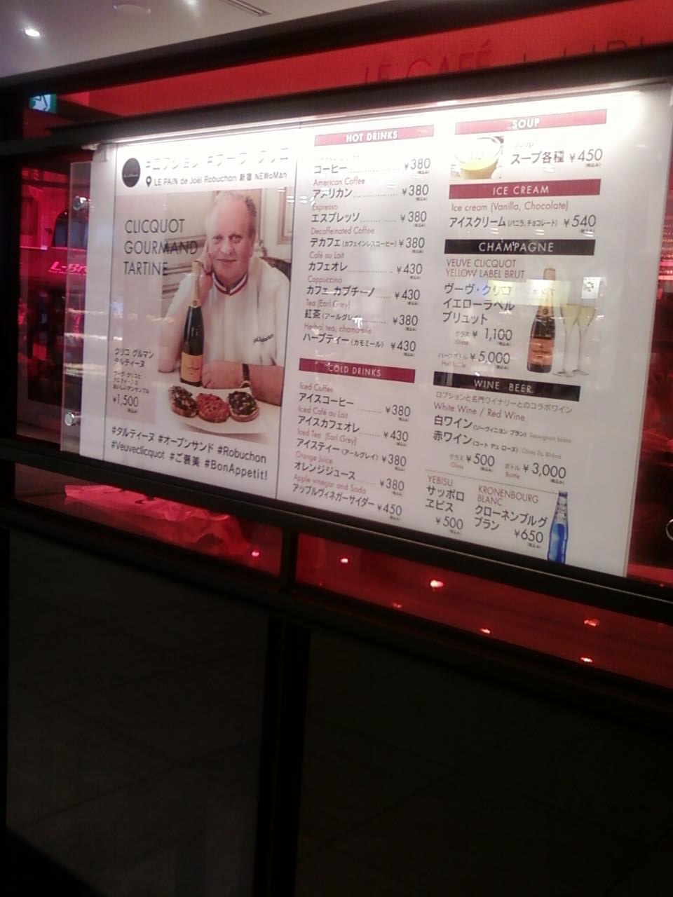 ここのル・パン・ド・ジョエル・ロブション カフェは、新宿駅の東南口から3分くらいのところにある、NEWOMANの一階にあります。隣にル パン というパン屋さんがありますが、こちらはカフェになっていて、サンドイッチやヴィエノワズリー、アイスクリームもいただけます。ただ、全体的に高いですね。ほとんどのパンがひとつ300円以上はします。