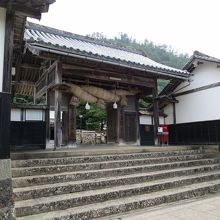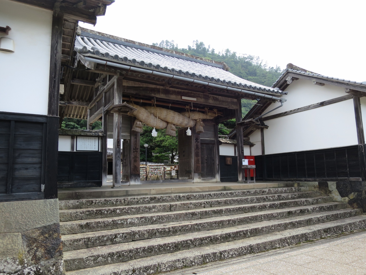 出雲大社の四の鳥居を東側に出た所に北島国造館があります。出雲大社の祭祀を司る千家と並ぶ北島家の出雲教の総本院です。注連縄のかかる大門を入ると広大な境内があり神殿の隣には庭園、池、亀の尾の滝、天神社、さらにその奥には、出雲大社の建築物で最古の四脚門があり、見どころ満載です。