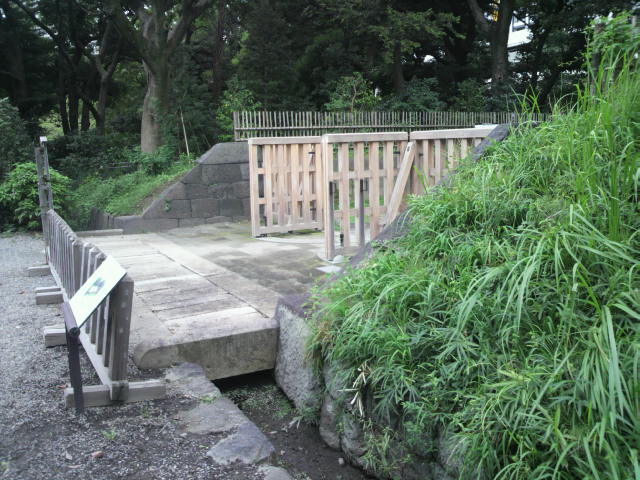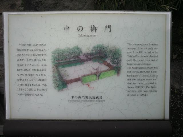 大正12年(1923年)の関東大震災で、中の御門橋がなくなり、また昭和2年に橋台であった石垣が撤去されました。