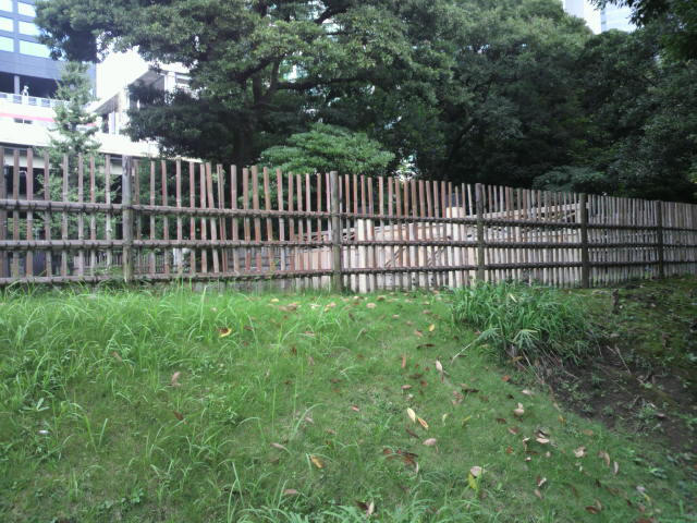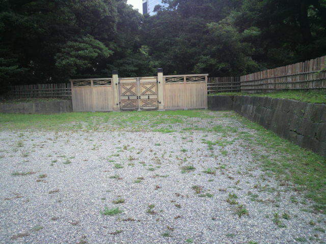 中の御門は、土手や石垣がありますが、土手の厚さが薄く、土手の上の柵も簡単な矢来型のもので、全体的に簡素になっています。