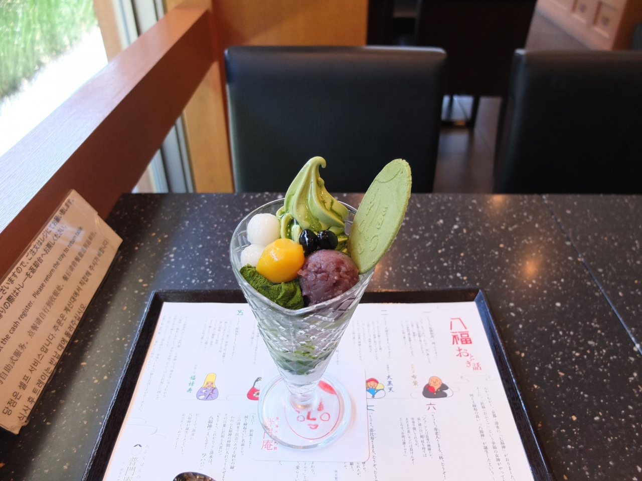 清水坂にはスイーツのおいしそうなお店がたくさんありますが、通りに出ていた写真を見て歩いて、一番おいしそうだったこのお店に入りました。通りからは少し奥に入りますが、明るくて気持ちの良い店内で、抹茶のパフェを頂きました。
