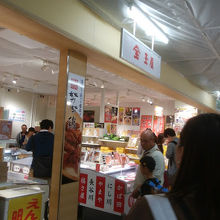 ふくおかくうこうの国内線ターミナルビルの2階のお土産物屋さんが集まっている一画にあります。現在は国内線ターミナルビル自体が大規模改修工事中なので、このお店のある周辺も暫定利用みたいな感じになっていて、狭くて雑然としています。お店自体は定番の箱菓子系よりも辛子明太子やさつま揚げあげなどの、菓子以外の食品類が充実しています。菓子以外の土産を探すのにちょうどいい感じのお店だと思います。但し、空港ですので品質も良いですがお値段も相応だと思います。
