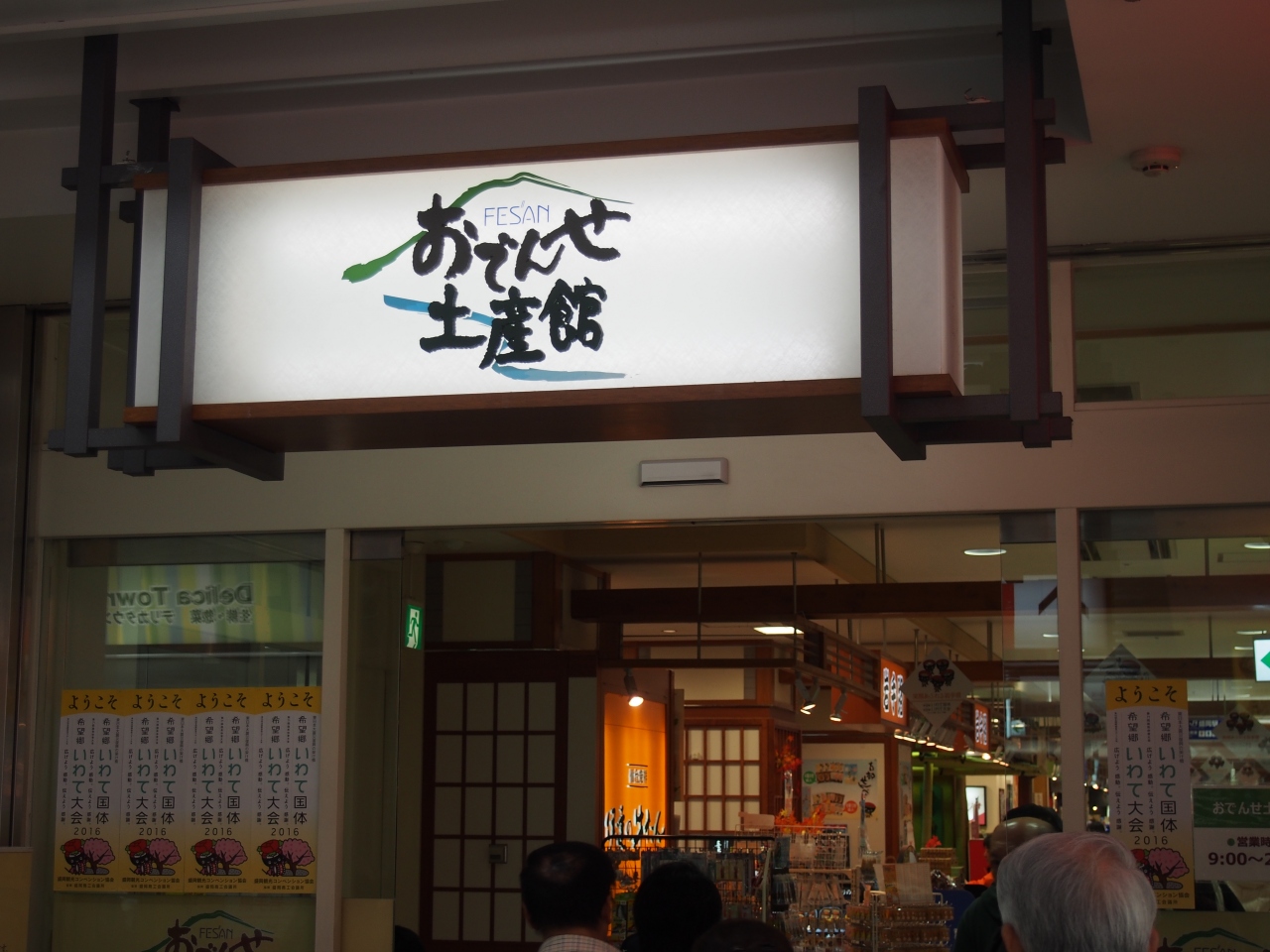 盛岡駅の駅ビルであるフェザンの1階におでんせ土産館があります。お土産店が10軒ほどは集まっているのでしょうか、菓子などから民芸、工芸品、地酒などいろいろな商品が売られています。盛岡、岩手などの名産がそろい選ぶのが楽しいです。
