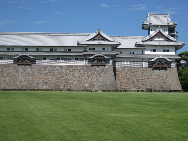 金沢公園二の丸の三層の物見櫓。三階建てで三階へは小さな急な階段を上る必要がある。一階には、石垣をよじ登る敵を防ぐために出窓を設け、出窓の床板を開いて石を落とす「石落とし」・鉄砲狭間・菱櫓中脚部の透視展示、2階には、菱櫓等軸組み模型・金沢城再現模型が展示されている。